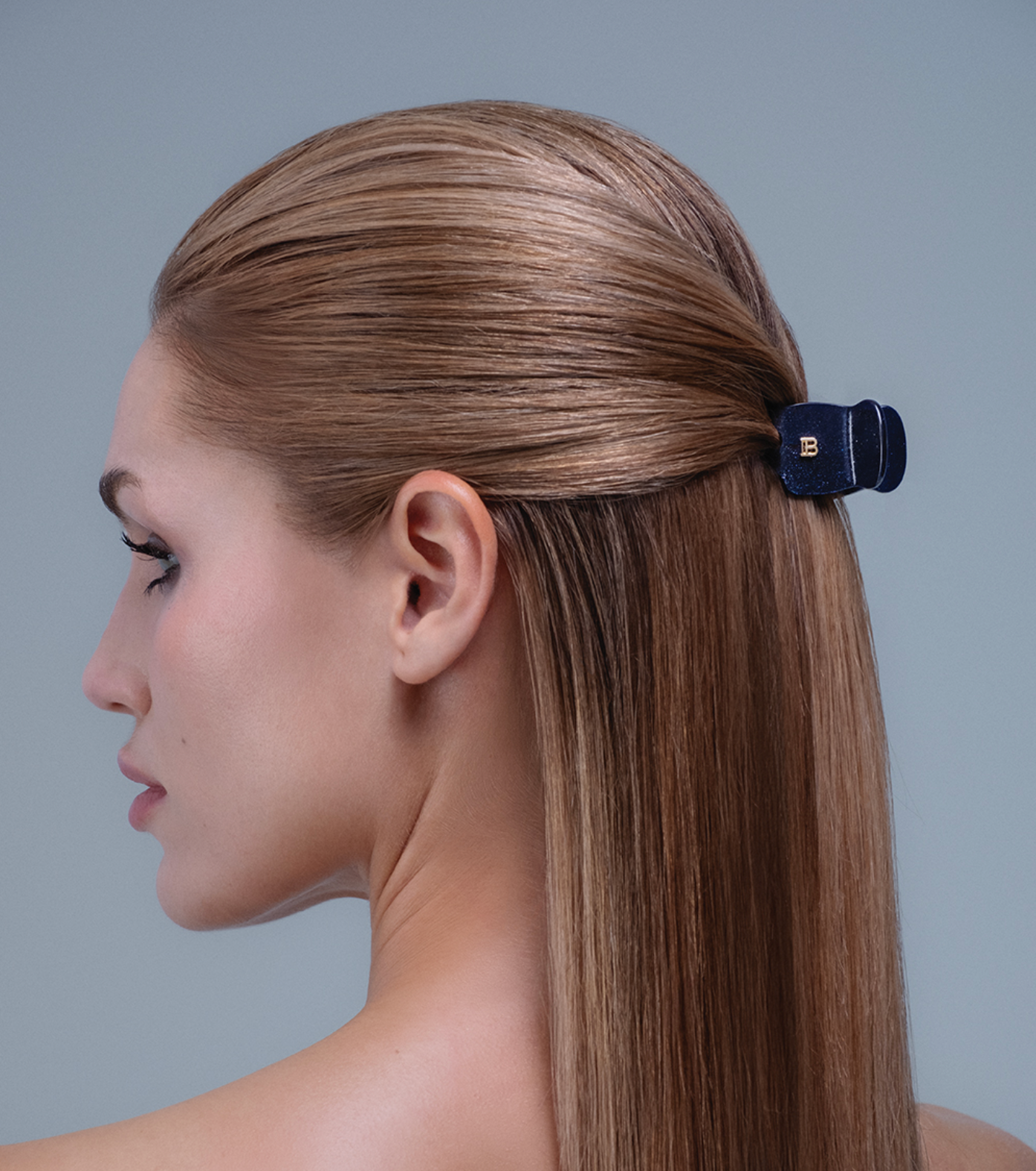 The extra small claw clip by Balmain Hair is an essential French hair accessory, specifically designed for thin, fine hair, effortlessly sweeping loose tresses away from the face.