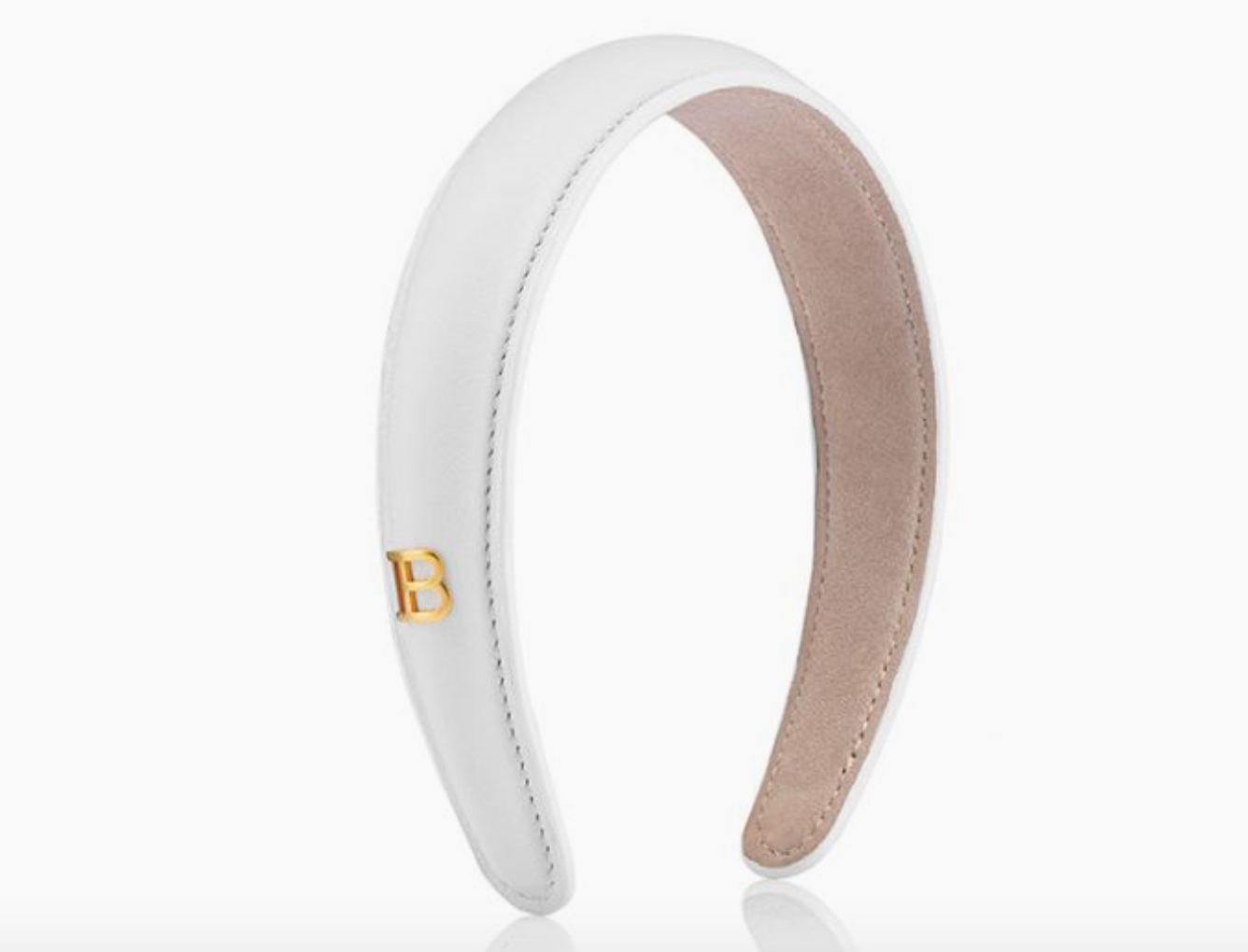 Limited Edition genuine Napa leather headband with a puffed silhouette, embellished with the iconic 18K gold-plated logo. This headband adds elegance to any hairstyle.