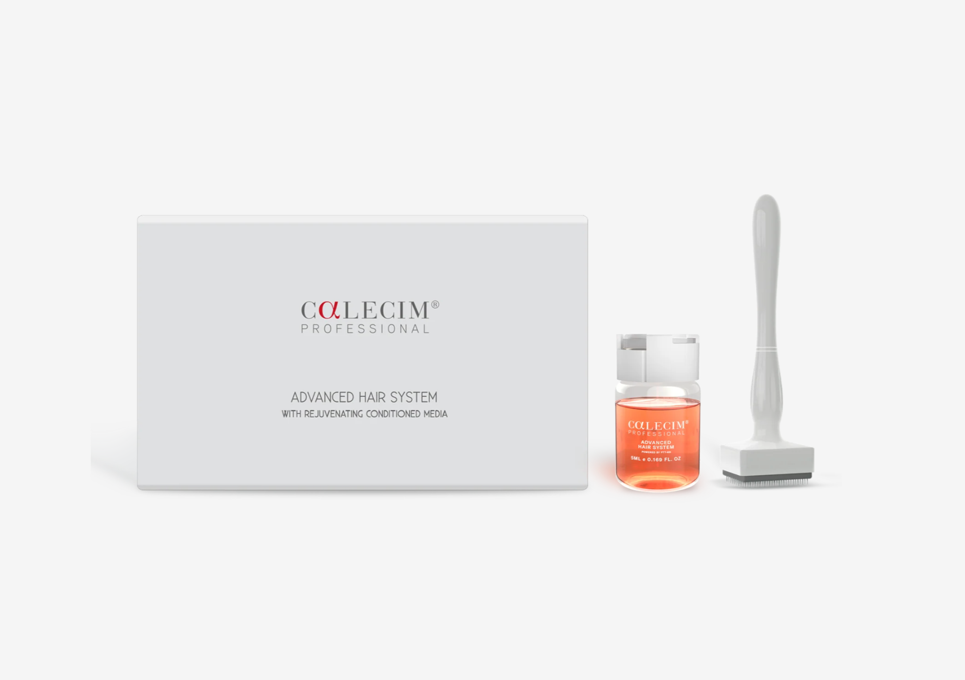 Calecim's Advanced Hair System is a six-week, non-invasive hair-growth treatment designed for both men & women dealing with thinning or shedding. It features their patented PTT-6 serum. The typical regimen involves micro-needling twice weekly for the first 6 weeks, then moving to weekly maintenance with half an ampoule per session.