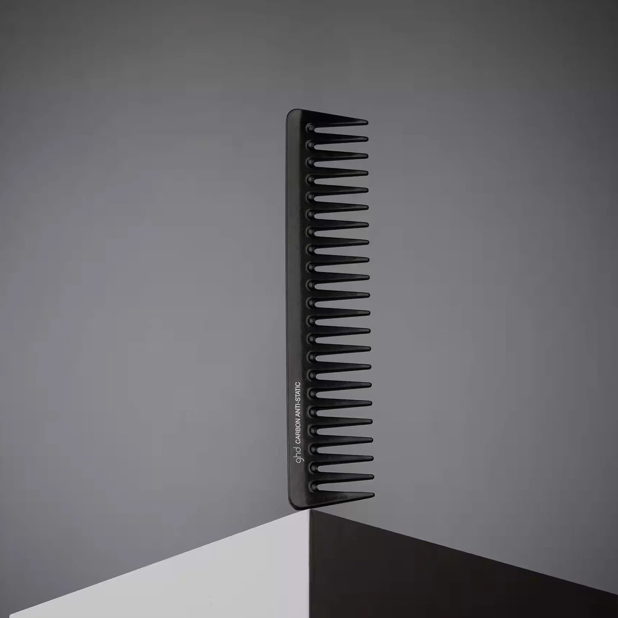 The GHD Detangling Comb can be used to brush out curls or distribute products evenly through damp hair such as conditioner and hair masks.