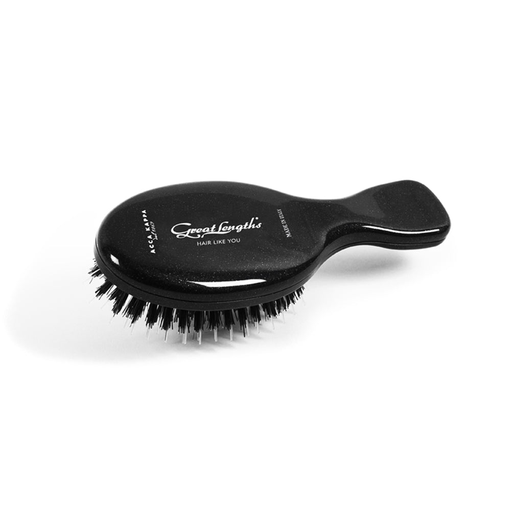 The Small black handbag brush easily fits in any handbag and is perfect to use during all occasions. Specially designed for brushing hair extensions.