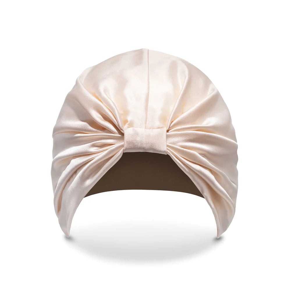This 100% pure mulberry silk turban shields your hair against the nightly friction and moisture absorption of your pillowcase that causes breakages, dryness and frizz. Protecting your locks to promote growth, boost shine and preserve your hairstyle day after day… all while you sleep.