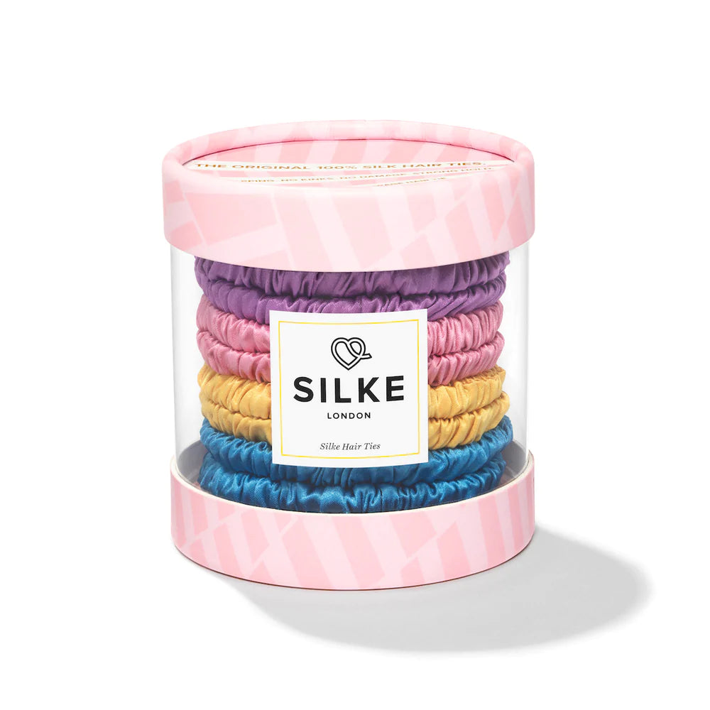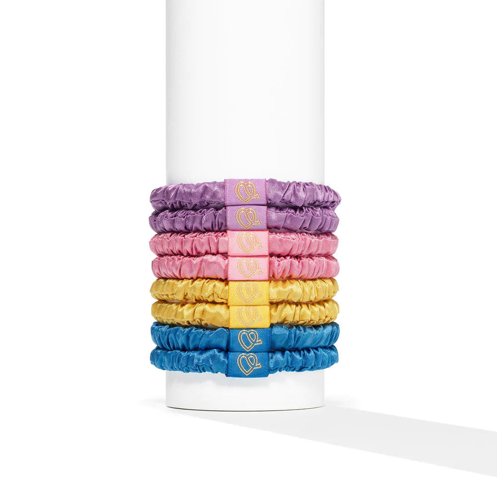 These 100% pure silk hair ties are beautifully crafted to glide against hair, eliminating the damaging snagging, clawing and tugging of abrasive traditional elastics. A specially selected super strong + super stretchy elastic interior and 100% pure silk exterior - They're all the hold, without the damage.