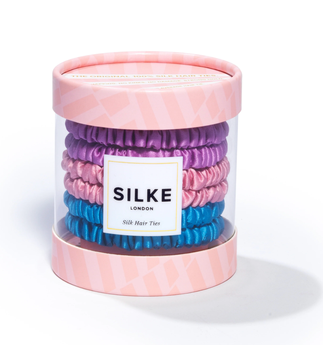 These 100% pure silk hair ties are beautifully crafted to glide against hair, eliminating the damaging snagging, clawing and tugging of abrasive traditional elastics. A specially selected super strong + super stretchy elastic interior and 100% pure silk exterior - They're all the hold, without the damage.