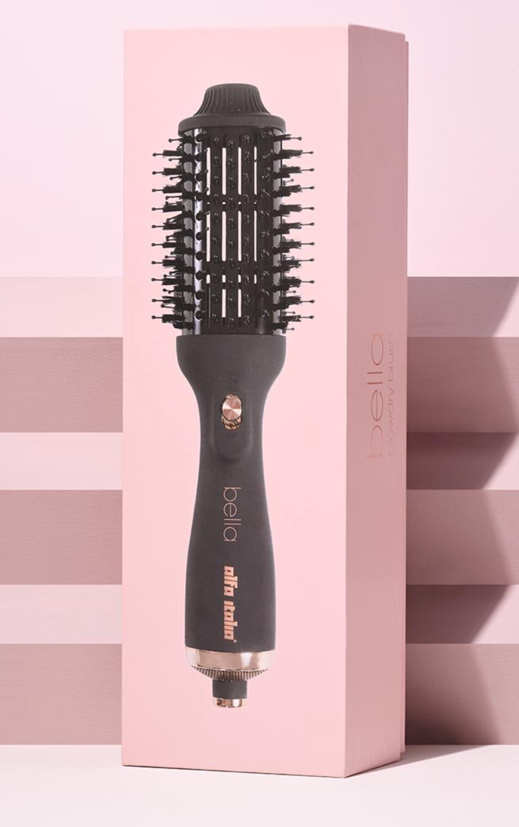 The Alfa Italia ‘Bella’ Blowdry Brush combines a round brush and hair dryer for a voluminous blowout with twice the shine*.