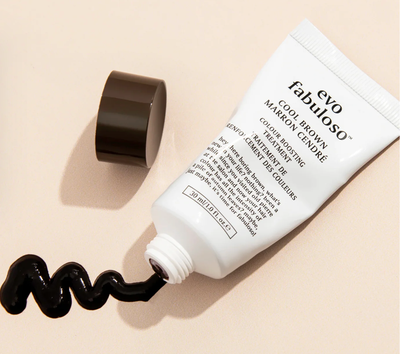 Evo Fabuloso colour boosting treatments instantly refresh, tone, revive and add shine to color treated hair. this at-home, 3 minute conditioning treatment uses cationic hair dye to help boost color and keep hair vibrant for longer. this hair treatment features reparative and anti-static properties to help strengthen hair and reduce frizz. cool brown is best suited to dull, dry, color-treated light brown to dark brown hair. take evo fabuloso straight from shelf to shower to keep color-treated hair toned, vibrant and healthy in-between salon visits.