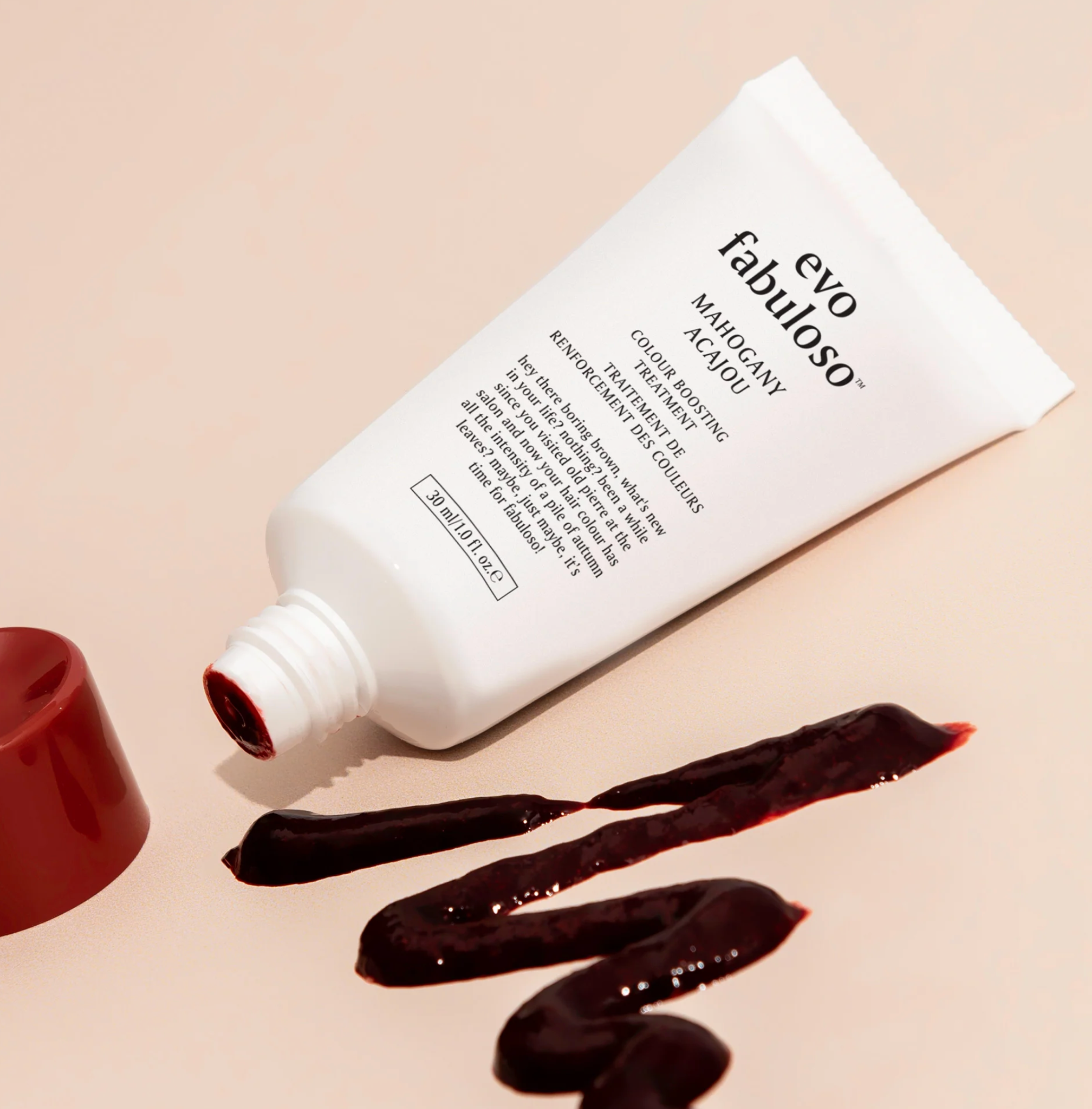 Evo Fabuloso colour boosting treatments instantly refresh, tone, revive and add shine to colour treated hair. this at-home, 3 minute conditioning treatment uses cationic hair dye to help boost colour and keep hair vibrant for longer. this hair treatment features reparative and anti-static properties to help strengthen hair and reduce frizz. mahogany is best suited to dull, dry, colour-treated dark blonde to medium brown hair with mahogany tone. take evo fabuloso straight from shelf to shower to keep colour-treated hair toned, vibrant and healthy in-between salon visits.