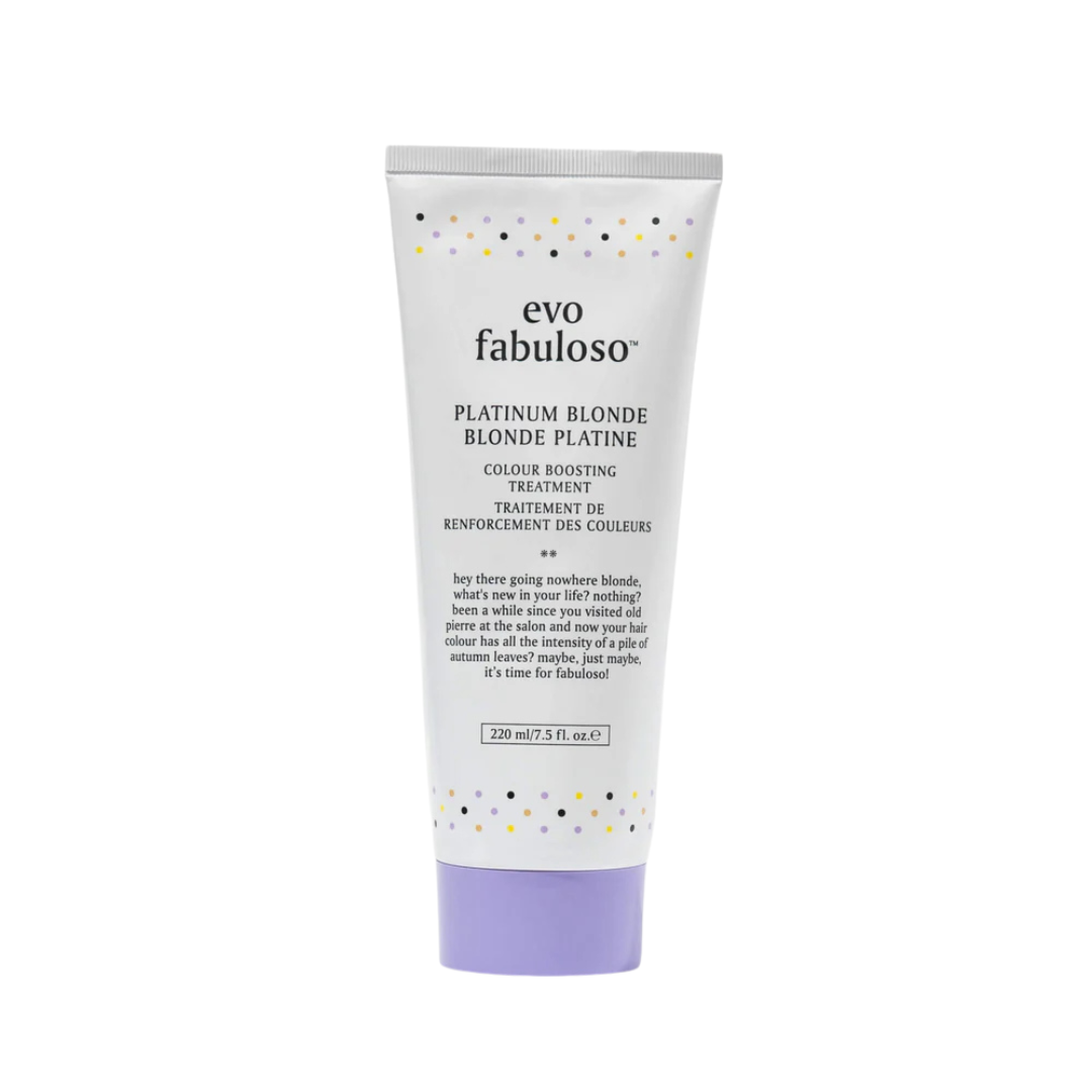 Evo Fabuloso colour boosting treatments instantly refresh, tone, revive and add shine to colour treated hair. this at-home, 3 minute conditioning treatment uses cationic hair dye to help boost colour and keep hair vibrant for longer. this hair treatment features reparative properties to help strengthen hair and reduce frizz. platinum blonde is best suited to blonde, lightened or grey hair. the evo fabuloso platinum blonde trio is here to tone brass, repair damage and bring out the best of your blonde.