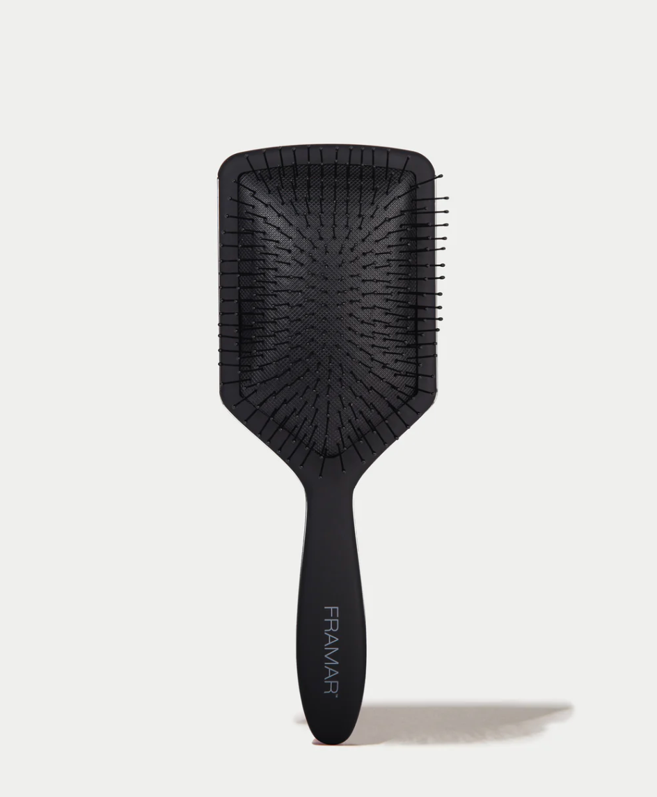 The Framar Black To The Future Brush has flexible bristles and a large paddle size in a gorgeous matte black finish. This brush effortlessly detangles knots & works on both wet & dry hair, it is suitable to all hair types & extensions.