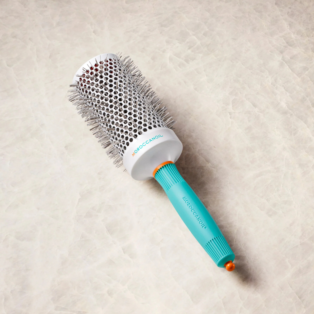 Including an sectioning tip, the Moroccanoil Ceramic 55 mm Round Brush is made with high-quality materials and ceramic and ionic properties that allow for even heat distribution, enhancing drying time and leaving hair shiny.